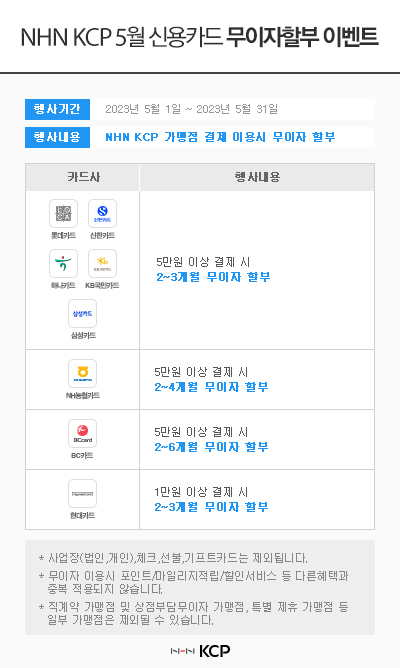 2023년 5월 무이자 할부안내 [ KCP / PAYCO ]