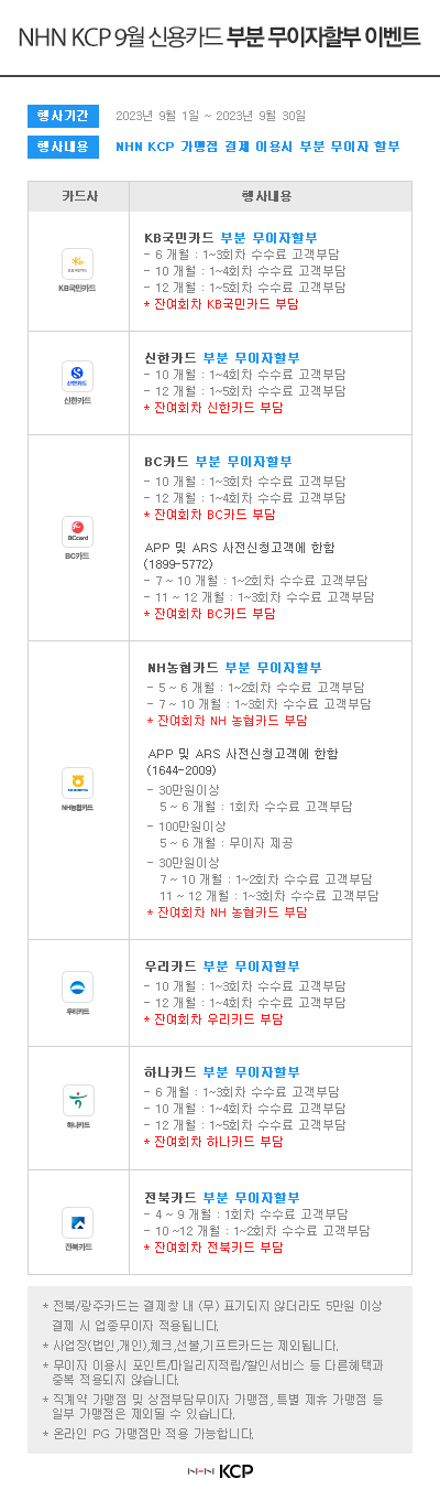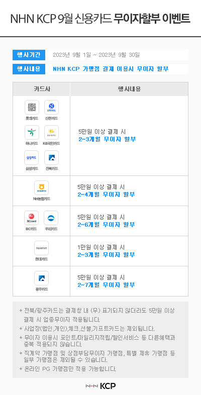 2023년 9월 무이자 할부안내 [ KCP / PAYCO ]