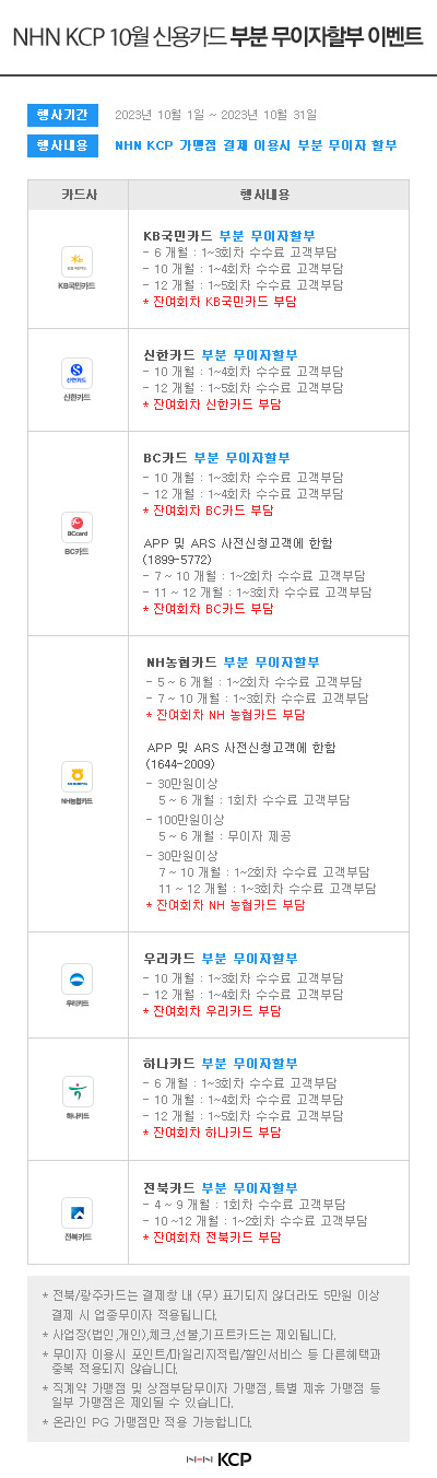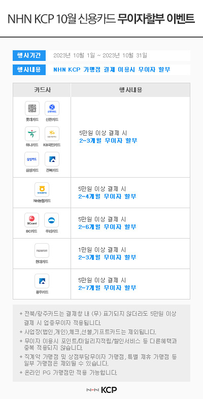 2023년 10월 무이자 할부안내 [ KCP / PAYCO ]